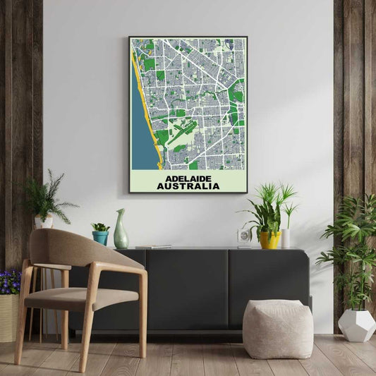 COLOURED ROAD MAP OF ADELAIDE, AUSTRALIA BY MAPBAKES