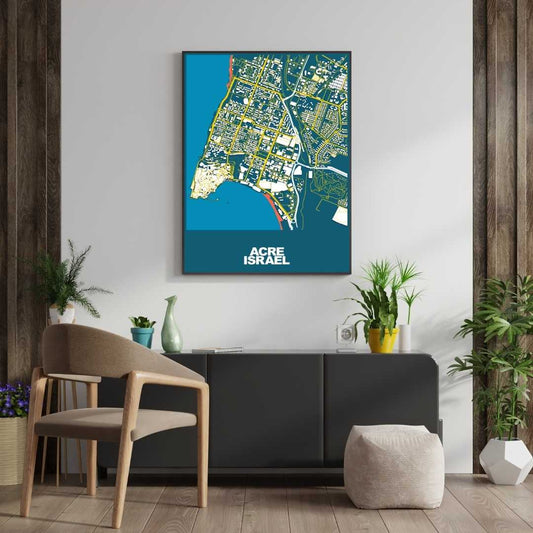 COLOURED ROAD MAP OF ACRE, ISRAEL BY MAPBAKES
