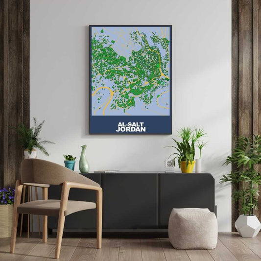 COLOURED ROAD MAP OF AL-SALT, JORDAN BY MAPBAKES
