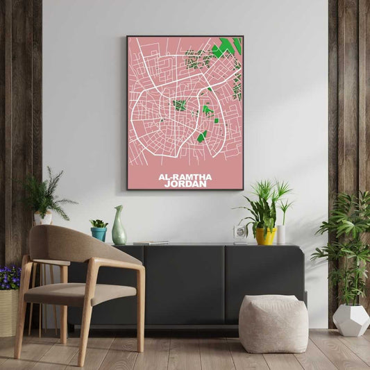 COLOURED ROAD MAP OF AL-RAMTHA, JORDAN BY MAPBAKES