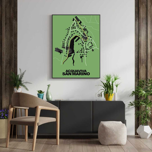 COLOURED ROAD MAP OF ACQUAVIVA, SAN MARINO BY MAPBAKES