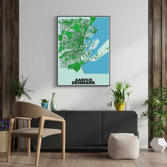 COLOURED ROAD MAP OF AARHUS, DENMARK BY MAPBAKES
