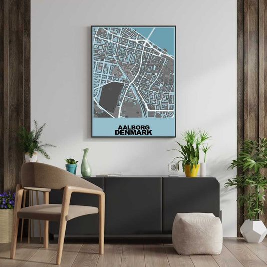 COLOURED ROAD MAP OF AALBORG, DENMARK BY MAPBAKES